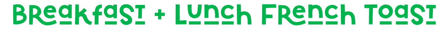 Since school lunch is an ever-moving target, we wanted to share a few of our recent learnings as well as a shopping list we’ve been using this winter—plus a protein-dense French toast recipe that doubles as breakfast and lunch. Trigger warning: Fanny’s daughter is an unusually dependable vegetable eater—and generally doesn’t touch her lunch when it contains a more traditional “entrée” (pasta, rice, etc.) these days—so don’t let these lunches shame you. Just use them as some gentle inspiration to give edamame or a mini pepper a shot—your kid just might like them…